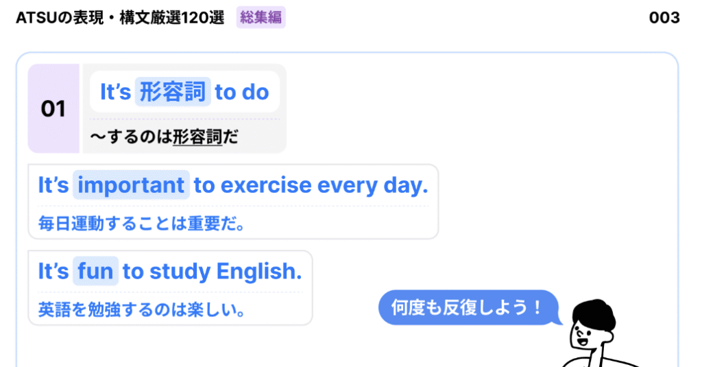 表面に日本語、裏面に英語と音声と構文の概要を記載してみました。なかなかいい。