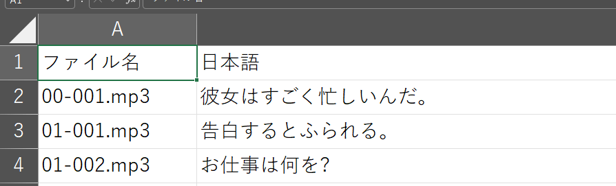 次に、Ankiに登録する音声ファイルを作成します。