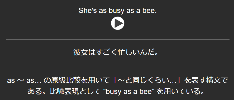 完成形のイメージとしては、暗記カードの表面に英文とその音声を登録し、裏面に日本語訳とその英文の文法の簡単な解説を登録する感じです。